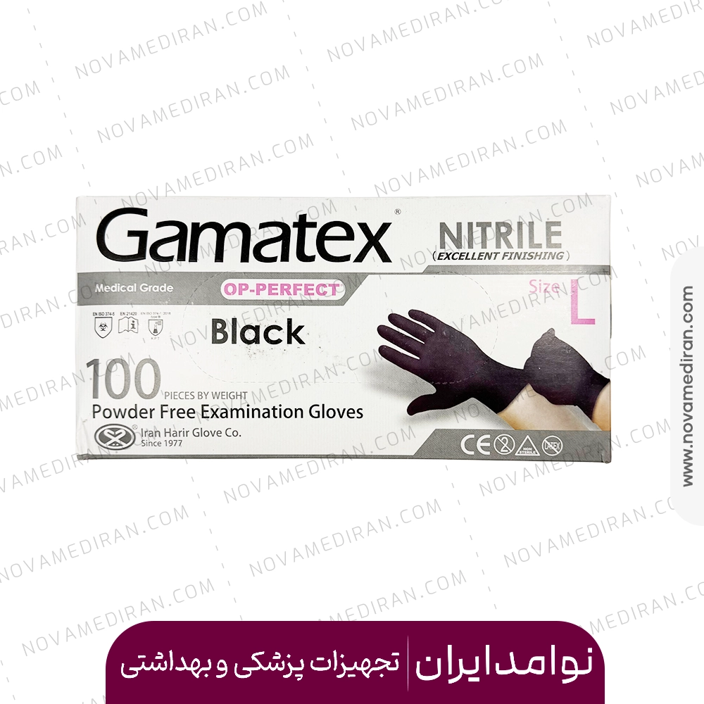 دستکش نیتریل مشکی Gamatex اوپی پرفکت 100 عددی