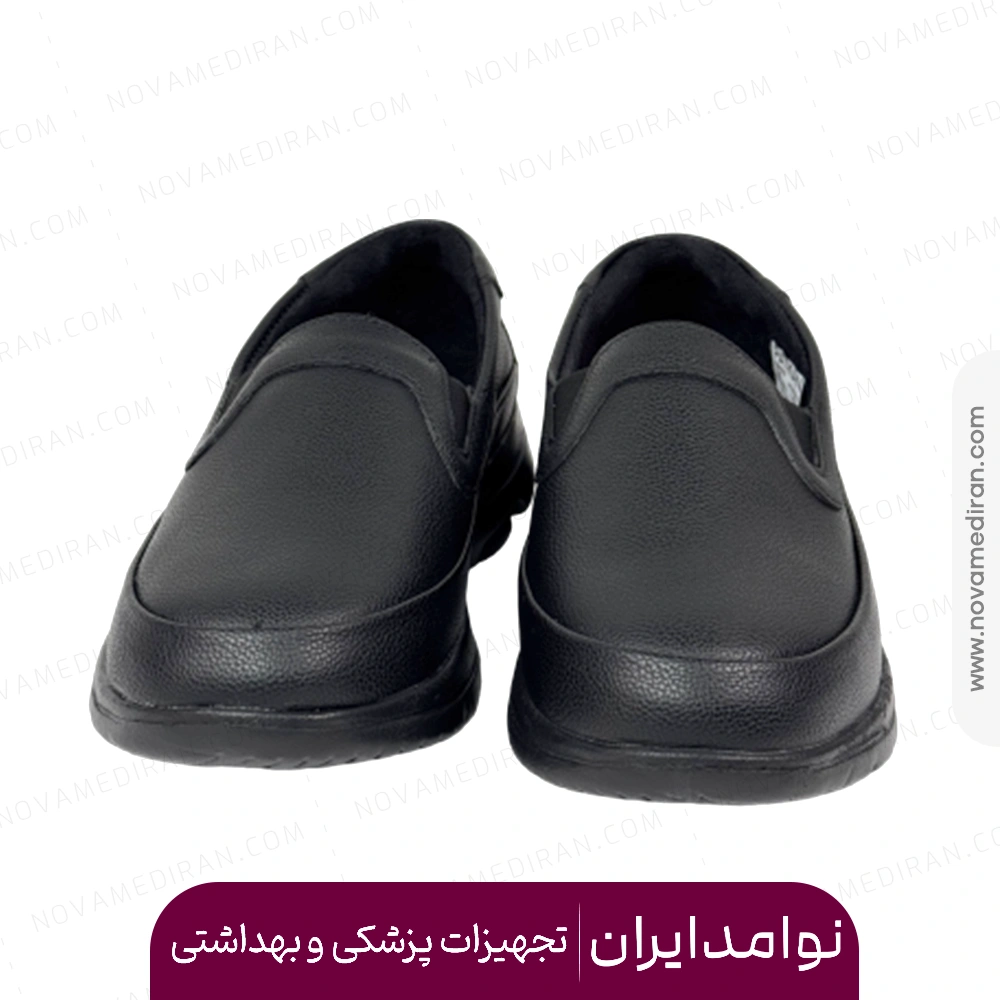 رویه کفش از چرم مصنوعی مرغوب به همراه بخش استرچ کشی ساخته شده است تا علاوه بر استحکام بالا، انعطاف لازم را نیز داشته باشد. وجود قسمت کشی رویه باعث میشود کفش بهراحتی پوشیده شود و در عین حال کاملاً روی پا بنشیند؛ بدون آنکه باعث فشار یا لغزش شود. این ویژگی برای افرادی که ساعات زیادی سرپا هستند یا با ورم پا مواجهاند، بسیار مفید است.