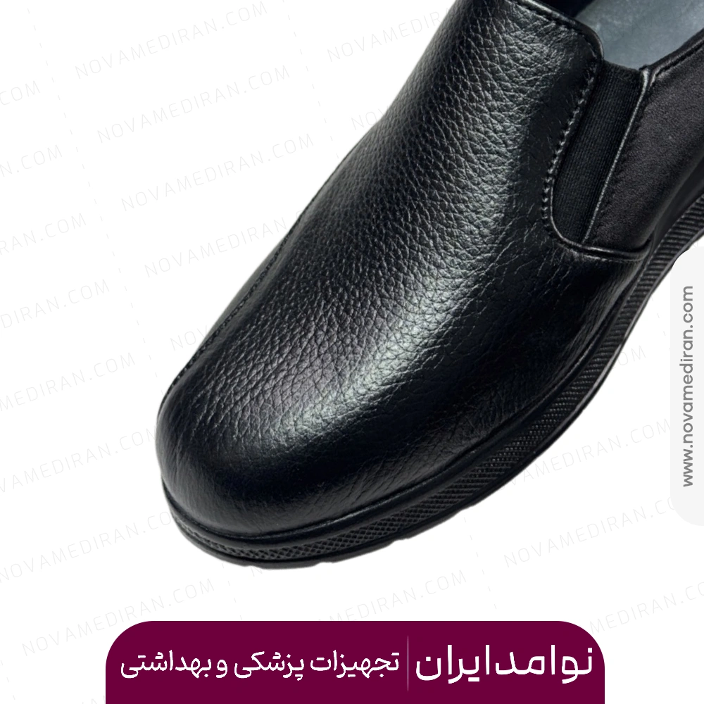 کفش طبی پاتکان طب کد ۷۶۷ به دلیل طراحی کلاسیک و رنگ مشکی براق، گزینهای عالی برای استفاده در محیطهای اداری، آموزشی و درمانی است.